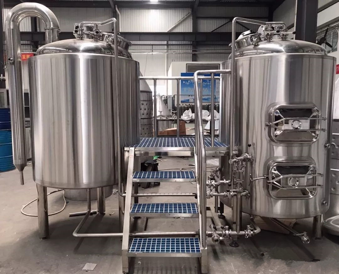 a.目前酒店酒吧精酿设备以节省空间的两器为主,即一个糖化过滤、一个煮沸旋沉。如果预算稍微可以,建议上三器:增加一个热水锅,便于洗糟。热水锅的比例为糖化锅容积的60%即可。如果预算没问题,建议三器中的热水锅直接改成煮沸锅,这样煮沸锅既可以当热水使用还可以当煮沸使用,一天轻松酿2-3锅酒。