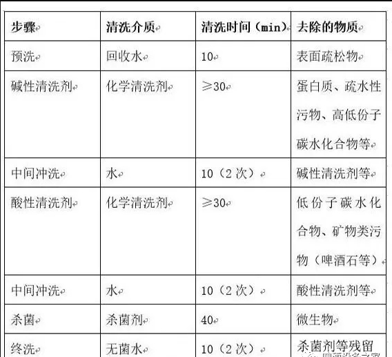 当然,在采用清洗剂清洗容器和管路之前,先用水冲洗,除去大部分污垢,然后再用清洗剂清洗,以节省清洗剂用量。用清洗剂清洗完毕后,再用水淋洗干净;如需杀菌,再用杀菌剂杀菌后,以无菌水淋洗干净(有些杀菌剂无需淋洗)。