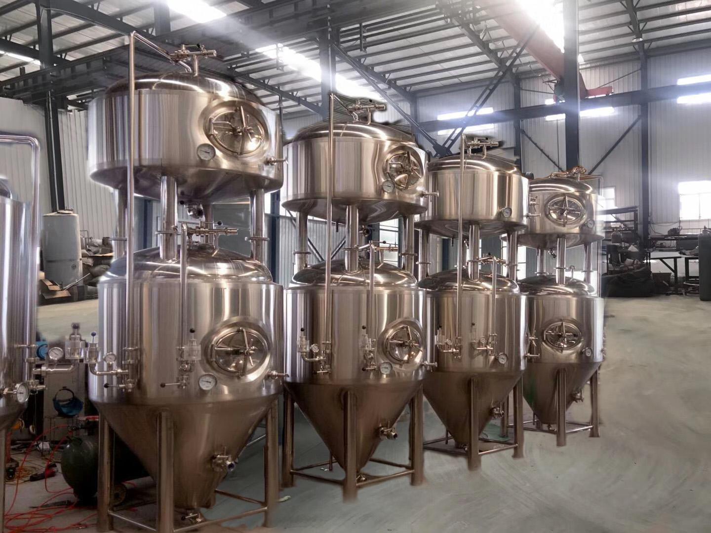 啤酒发酵罐用于自酿啤酒设备中发酵工段,蜂窝夹套,聚氨酯保温。所有材料SUS304制造。罐体上配有过压和真空保护安全阀,可调式出酒口。是一种对物料进行机械搅拌与发酵的设备。该设备采用内循环方式,采用非对称调速搅拌,使物料快速降温,同时大限度减少对物料粘度的破坏。罐体采用SUS304或SUS316L进口不锈钢,罐内配有自动喷淋清洗机头,确保生产过程符合GMP要求,独特的介质导流设计使得冷却介质在夹套中分布更均匀,避免短路,从而达到高效的传热效果。